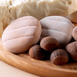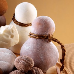 | CIOCCOLATO BIANCO 1000 gr. PASTA TORRONE 350 gr. | Mescolare i vari ingredienti, temperarli a 25°C, colare nello stampo "Tomino", raffreddare in frigorifero, togliere dallo stampo, passare nello zucchero a velo. |