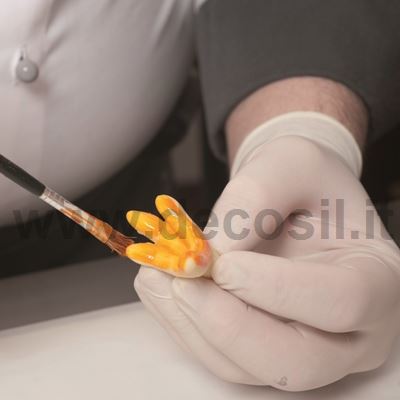 A continuación, introduzca el molde de silicona en el soporte plástico (Termoforma), haciendo coincidir con los bordes externos.