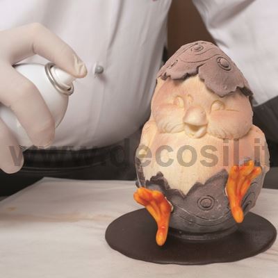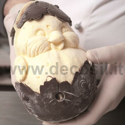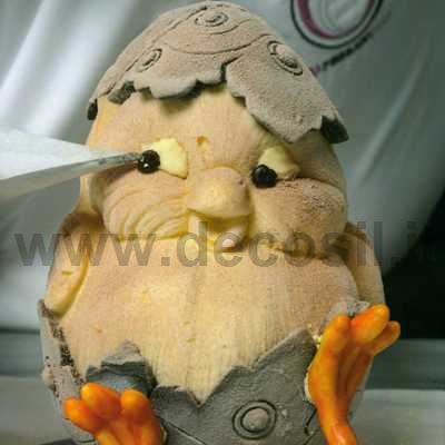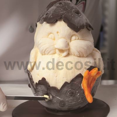 Polluelo helado, realizado con el uso de un molde de silicona que permite obtener los relieves y bajorrelieves que con moldes en otros materiales que apenas podíamos realizar.