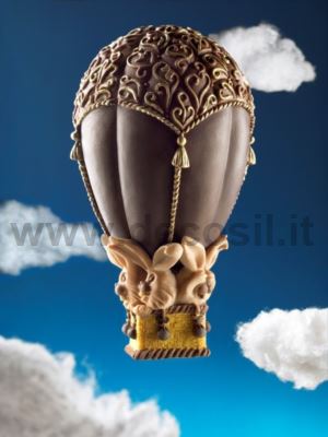 7. Completata la cristallizzazione del cioccolato, togliere il supporto in termoformato esercitando una leggera pressione sugli innesti in silicone. Staccare i bordi dello stampo in silicone ed infine, togliere il guscio in silicone eseguendo un movimento come se si dovesse "sbucciare".