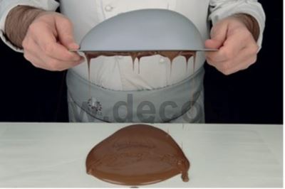 Como explica Laghi, en los moldes de silicona de decosil® se pude utilizar chocolate de cualquier color y porcentaje, pero debe estar perfectamente atemperado.