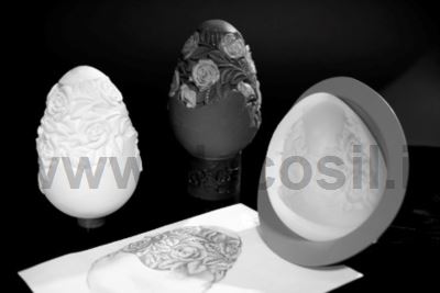 Para usar los moldes de silicona de la LINEAGUSCIO® (Campana, Pino, Esfera, Huevo), es necesario combinarlos con su Termoforma correspondiente, consistente en 2 partes rígidas necesarias para sostener cada mitad del molde de silicona.